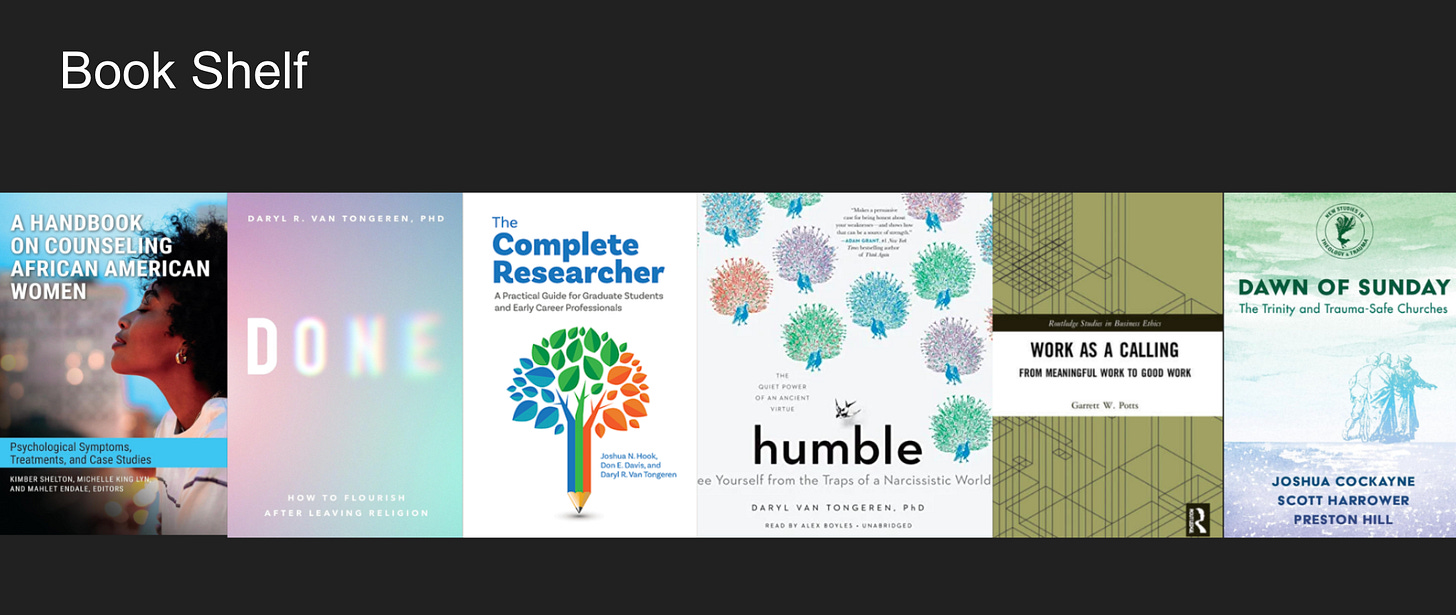 Friday, research retreat, Donnie Davis, Joshua Hook, and Daryl Van Tongeren(10 seats)